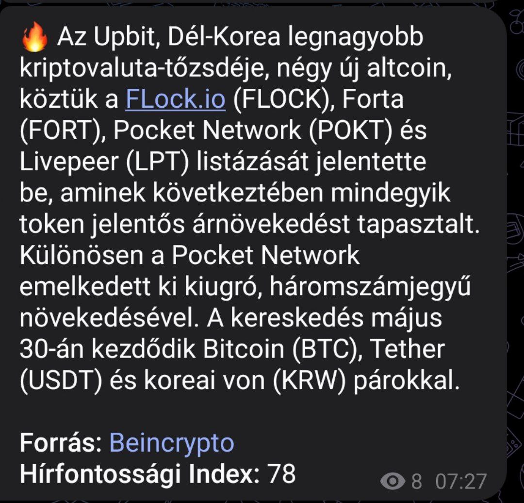 Egy mesterséges intelligencia által vezérelt hírbomba, ami valós időben szállítja a legfontosabb kriptós infókat — még azelőtt, hogy a Twitter vagy a híroldalak felocsúdnának.