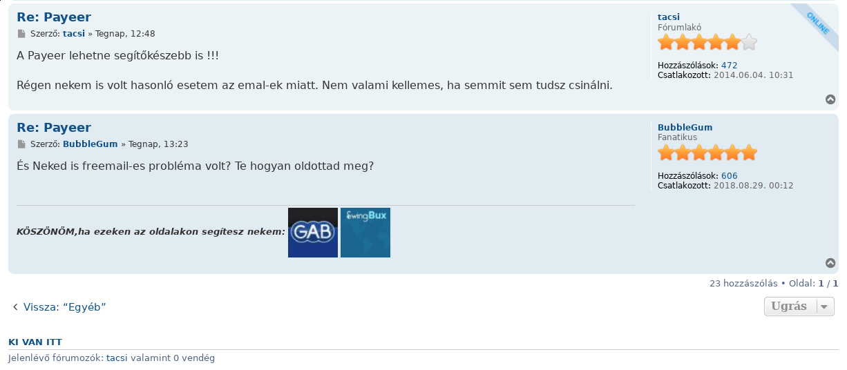 Most próbáltam az "Új hozzászólások"-nál mindegyiknél tudok hozzászólni, kivéve a Payeer topic-ba nem, pedig pont oda kellene.