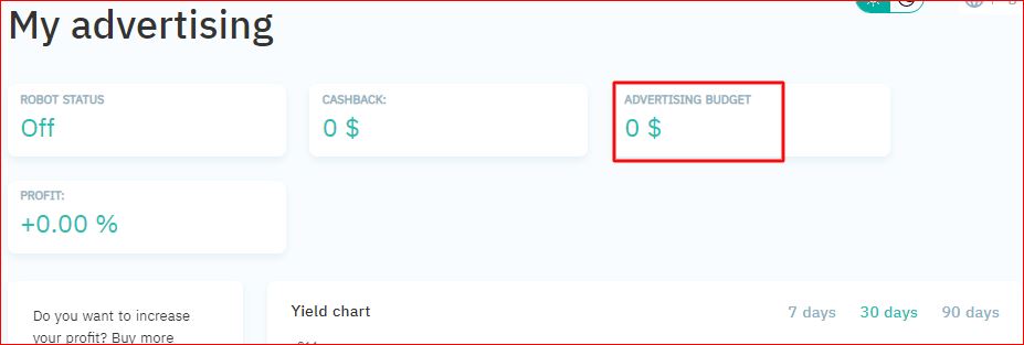 A bónusz összege jóváírásra kerül a Advertising egyenlegben a vásárlás összegével együtt.