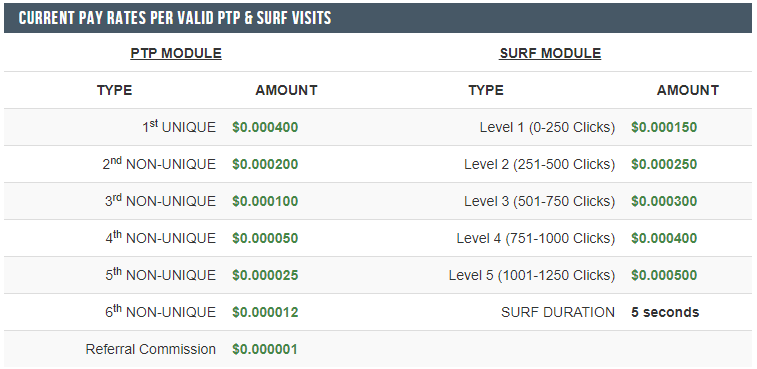 Jelenlegi árak pénzkeresésre (Szörf és PTP):