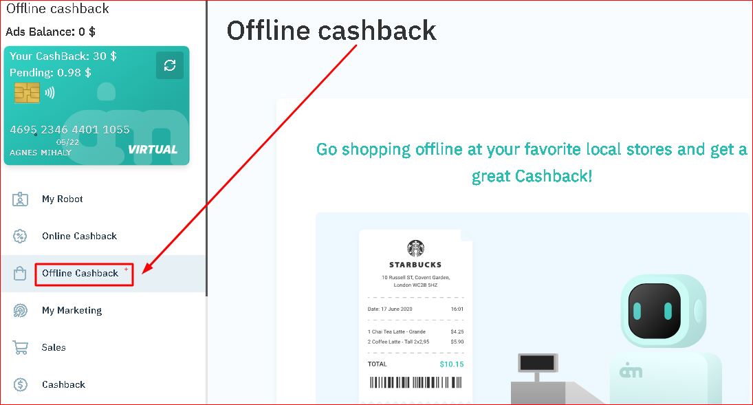 Az Offline cashback használata