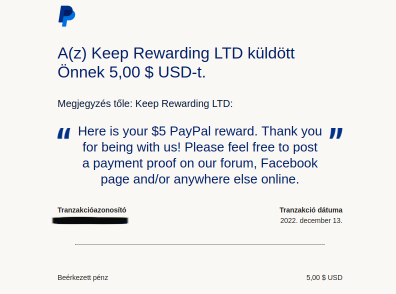 Évekkel ezelőtt találtam ezt az oldalt, de elsőre gyorsan feladtam, mert az első kifizetésig (ami minimum 1 USD) egy csomó részét nem lehet használni az oldalnak, ezért odaáig eljutni kínlódás. Második nekifutásra bizony összekattintgattam az első dollárt (pontosabban 75 centet, mert 25-öt alapból kap az ember regisztrációnál) PTC-ből, de ezután kinyílt minden, ami addig zárva volt, és meglepően magas fizetséget kaphatunk egy-egy kérdőívért, legalábbis bármilyen hasonló oldallal összevetve, amivel eddig találkoztam (10-20 centtől akár 2$-ig). Úgy egy éve vagyok tag az oldalon, és átlag 10-20 USD-t keresek vele havonta, ami szerintem jó, tekintve, hogy nem sok időm van nyomogatni. És hogy ne a levegőbe beszéljek, alább a legfrissebb kifizetés:
