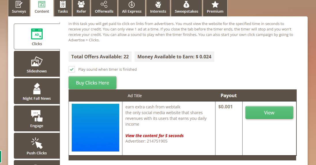 6-os Pont Click from the Clicks tab. Sima PTC. Itt azért naponta folyamatosan jelentkeznek újabb hírdetések. 3 cent általában megvan.